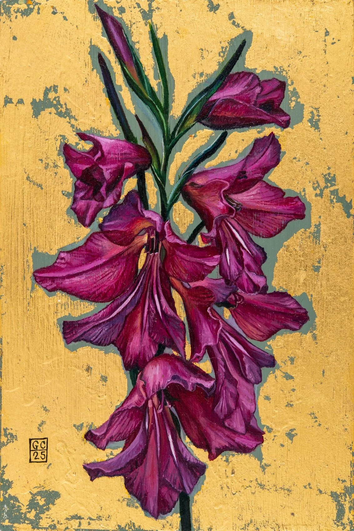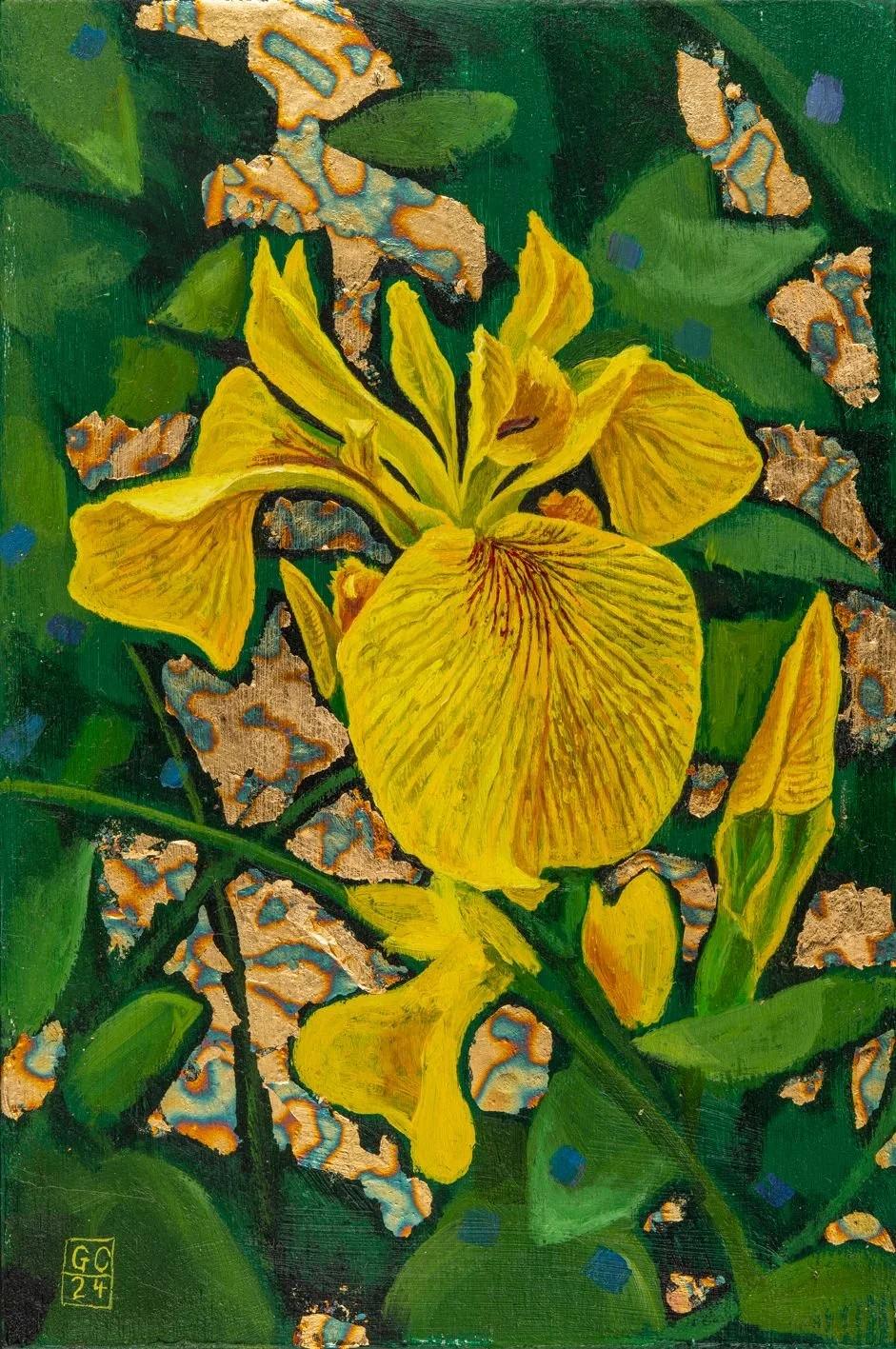 Iris, oil and metal leaf on panel 15 x10cm £975