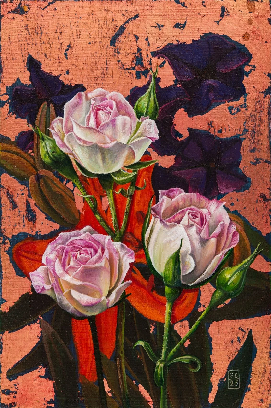 Roses and Lilies, oiled copper leaf on panel, 15 x10cm £975