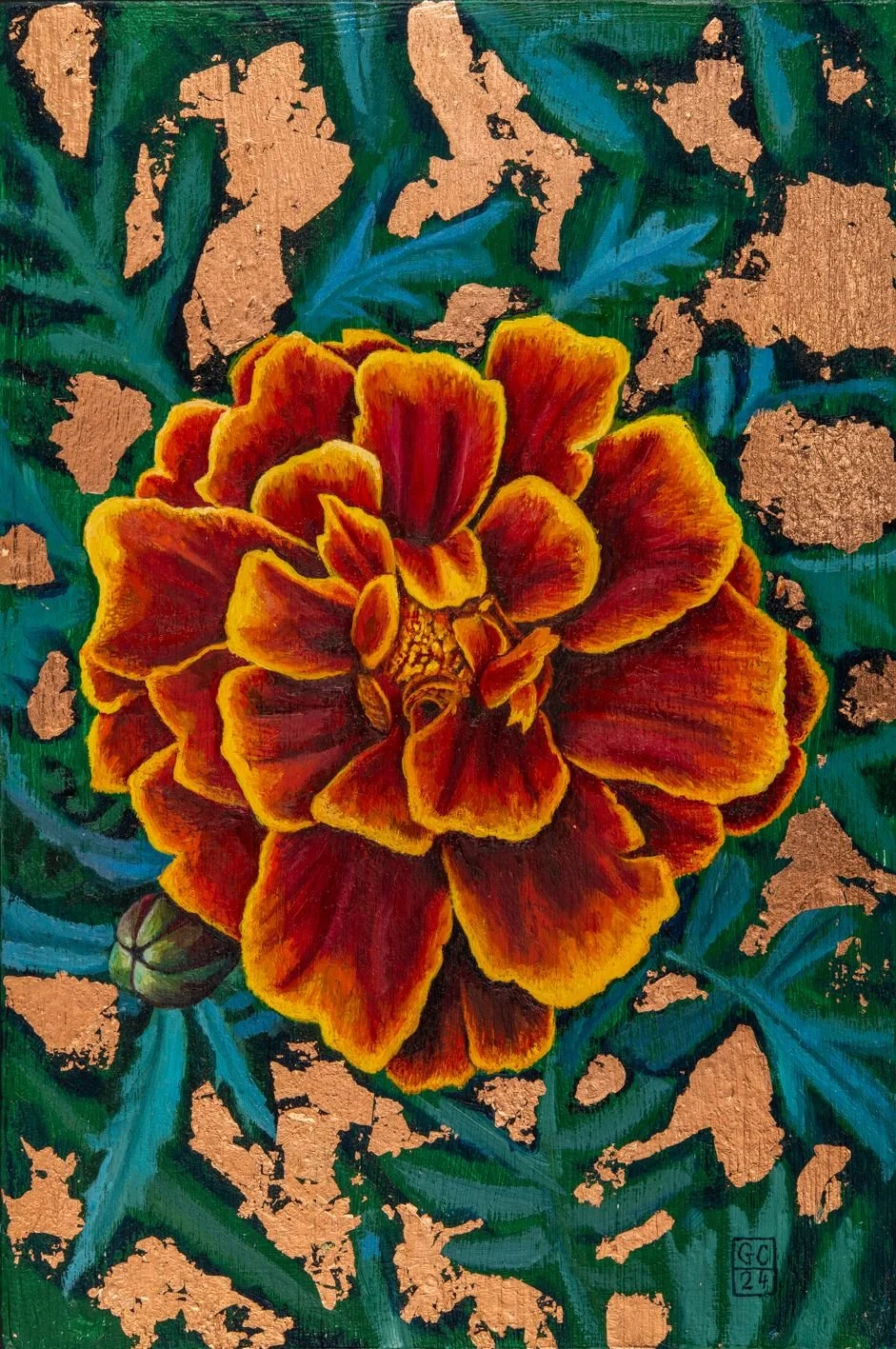 French Marigold, oil and copper leaf on panel, 15 x10cm £975
