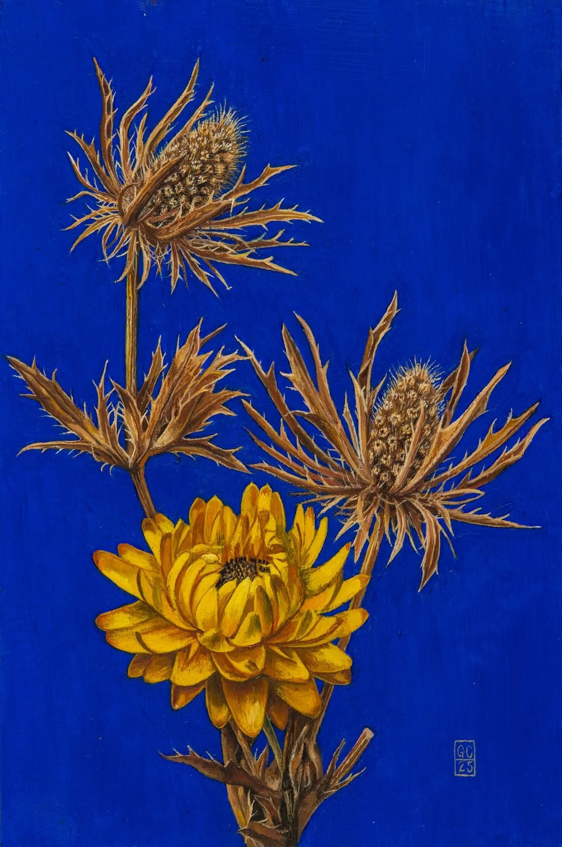 Strawflower and Eryngium, oil on panel. 15 x10cm £975